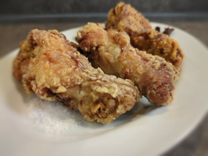 阿波地鶏の「唐揚げ」はサックサク!ブロイラーとはあきらかに違う肉質とうまみが味わえる一品です。