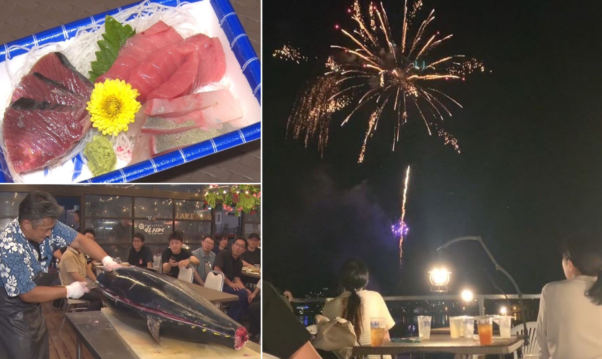 花火にマグロの解体ショーも!好評の湖上ビアガーデン 鮮魚卸『丸松水産』が手掛ける「海の幸」×「諏訪の魅力」
