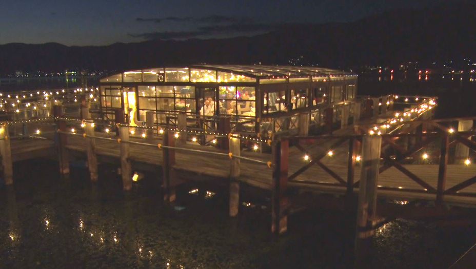 7月25日に始まった「諏訪湖サマーナイト花火」。地元の温泉旅館組合が毎年実施している「夏の風物詩」で、期間中はほぼ毎晩、夜8時半から約500発が夜空を彩ります。それに合わせて、今年から営業しているのが「丸松湖上ビアガーデン」。普段、使われていない桟橋を活用して設置されてます。