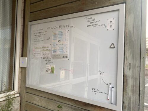 入口にはコミュニティボードを兼ねた「みんなの掲示板」が設置されています。