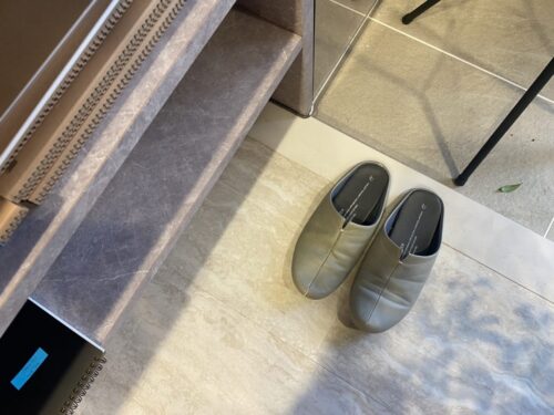 店内には靴を脱いで、スリッパに履き替えて上がります。