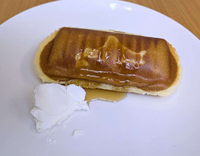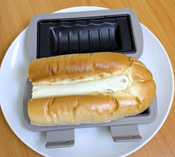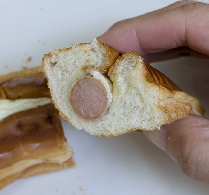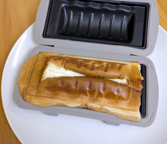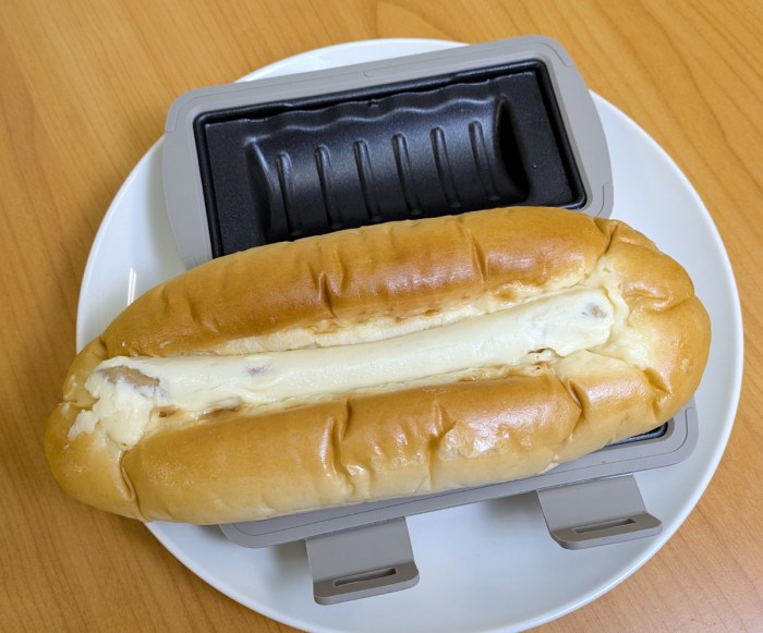 おお~! これもいいね。ホットドッグを圧縮した「プレスホットドッグ」といったところだろうか。もう少し焼き目がついたら、なおよかったかも。とはいえ美味そうだ。