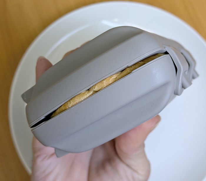 その点、スリコのこの商品は準備も片付けもカンタン! 具材を挟んでレンチンするだけ。使ったら丸洗いして乾かすだけ。これなら気軽にホットサンドをできる。
