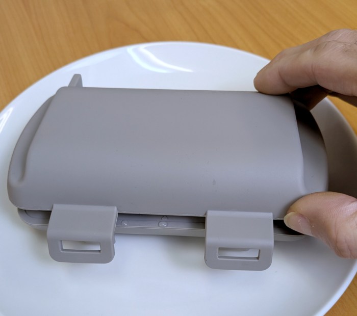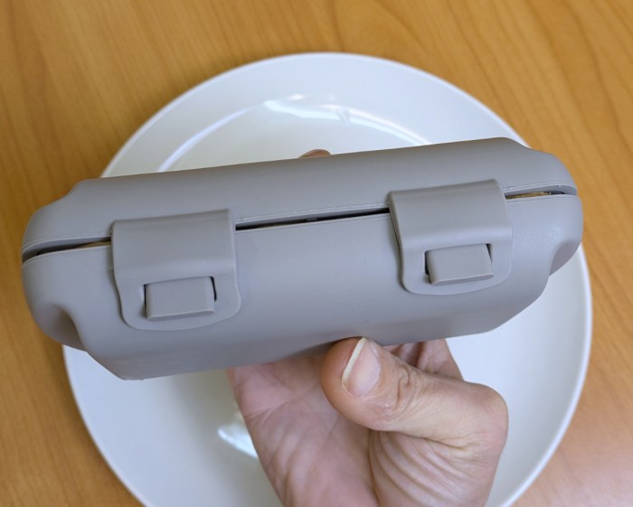 先の2商品と違って、蒸しパンは柔らかいので、軽々フタを閉じることができた。手ごたえがないので、圧縮している気がしないのだが……。