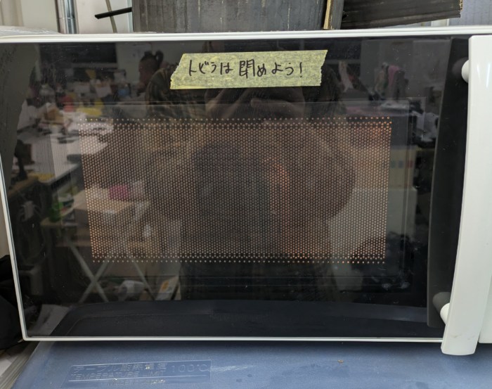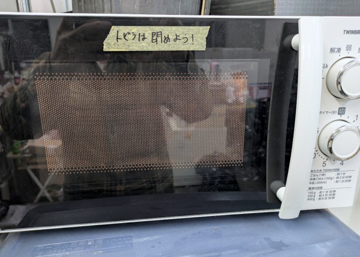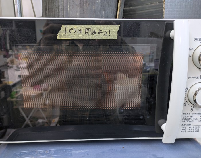 そしてレンジに投入して、600ワットで2分半加熱してみた。焼け焦げても困るので、いくぶん短めの時間を意識して設定している。はたしてこれで大丈夫か?