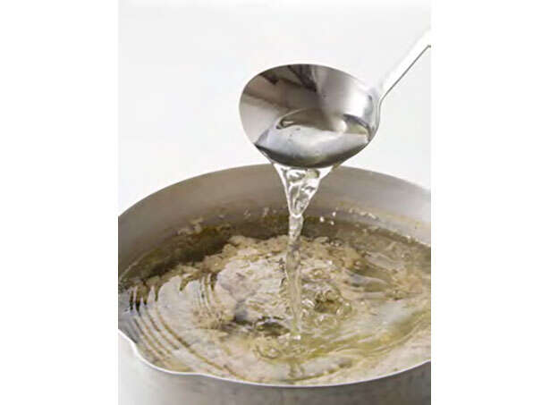 【ポイント】火をつける前に水と鶏ひき肉を混ぜておくと、うまみ成分が水に溶け出しやすい。タンパク質がゆっくり固まっていくので水が濁らず、澄んだスープに仕上がる。