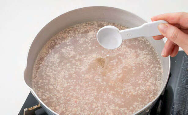 2.しょうが、酒、こしょうを入れて、中火にかけ、静かにゆっくり加熱する。