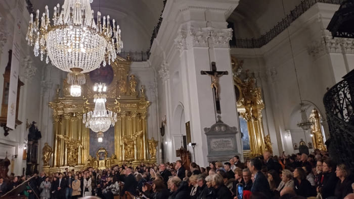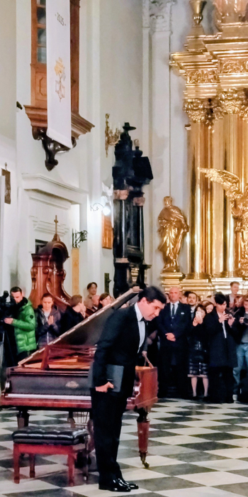 最後にコンクール場外で開催されたイベントについても触れてみたい。まず毎回、コンクール本選の日程前に行われるショパンの命日にちなんだミサだ。ショパンの心臓が納められている聖十字架教会でのコンサート。今年はウクライナ出身のピアニスト ヴァディム・ホロデンコがピアノ・ソロ版によるモーツァルト ミサ曲を聴かせてくれた。その日、何よりも印象的だったのは、ショパンの命日を心から悼むワルシャワ市民たちも多く詰め掛け、熱心に頭をうなだれていた姿だ。ショパンは真にポーランドの人々にとって誇るべき、かけがえのない存在なのだということを目の当たりにでき、嬉しかった。
