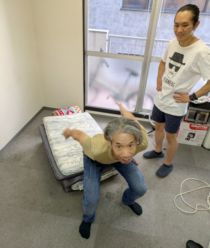 怖え! 立派なマットのある体育施設なら良いけど、布団に飛ぶのはマジで怖いよ。ちなみに練習で1回腰を打ったから、ますます怖くなってしまったよ……。