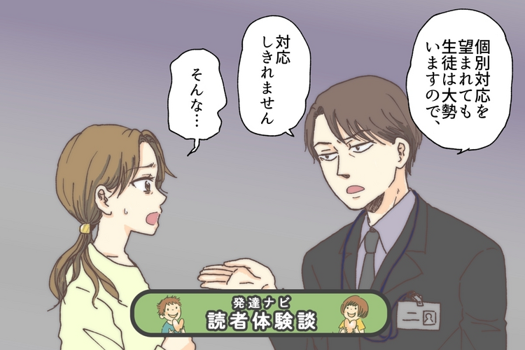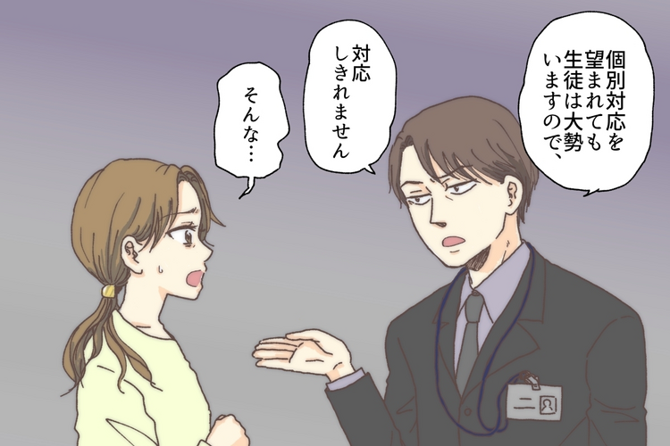 「みんなと違う、別の対応は難しいです。個別対応を望まれても、生徒は大勢いますので、対応しきれません」