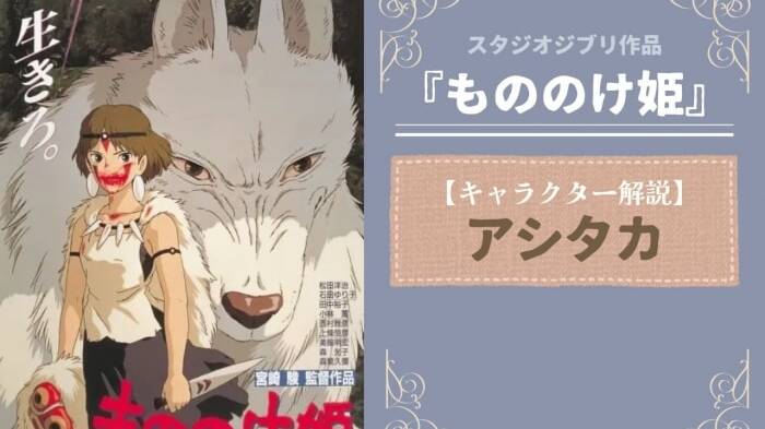 エミシ一族の数少ない若者のうちの一人で、一族の長となるべく生きてきた少年。村を守るためにやむを得ずタタリ神に矢を放ち、その際に死の呪いを受けました。呪いを解く方法を探すため村を出て西の地へと進むアシタカは、怪我人を助けてタタラ場へと辿り着きます。