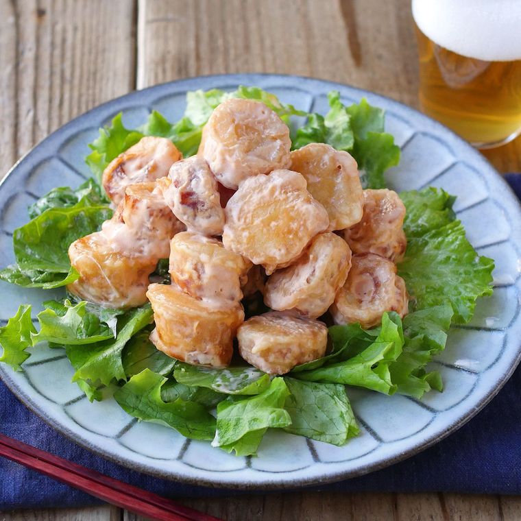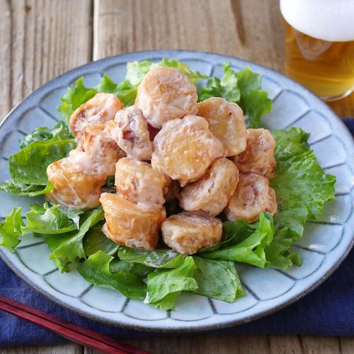 3: フライパンに多めのサラダ油を入れて170℃に熱し、②を入れてときどき返しながら揚げ焼きにします。