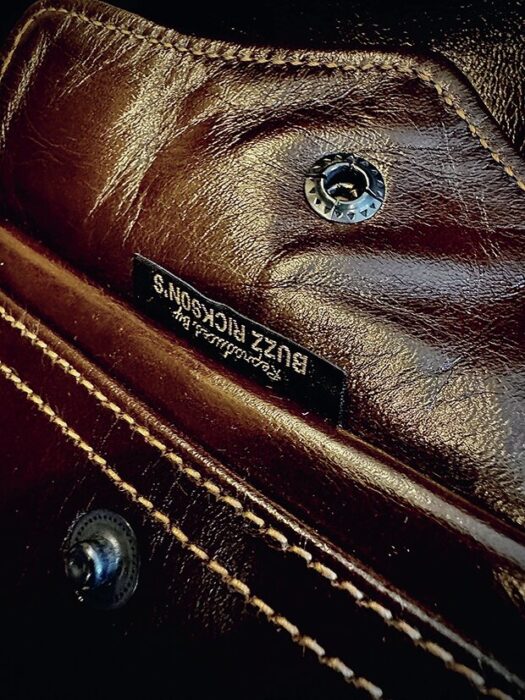 バズリクソンズの定番、ラフウエアのA-2。「おいしさ」の秘密は、ハンドアニリン仕上げのホースハイド。深みのあるシールブラウンだ。カタログ掲載は最大サイズ44だが、外国人客の多い新宿のジャンキースペシャルが別注したビッグサイズ46&48。レイヤードも楽しめる。26万4000円(ジャンキースペシャル TEL03-3232-0850)