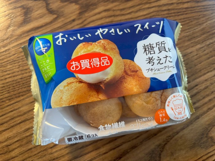 私、プチシュークリームが大好きなのだが、糖質が気になるお年頃。でも糖質オフっておいしくなかったら嫌だなと、なかなか購入の機会がなかったが、意外にも約10年前からあるらしい。