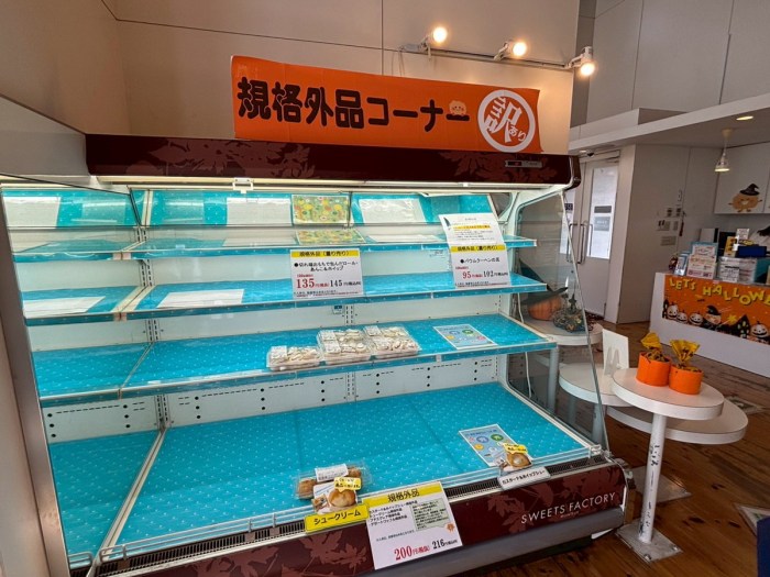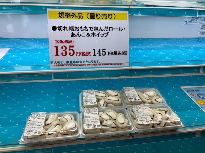 他にもロールケーキやバウムクーヘンの耳、ワッフルなども規格外品として並ぶことがある。