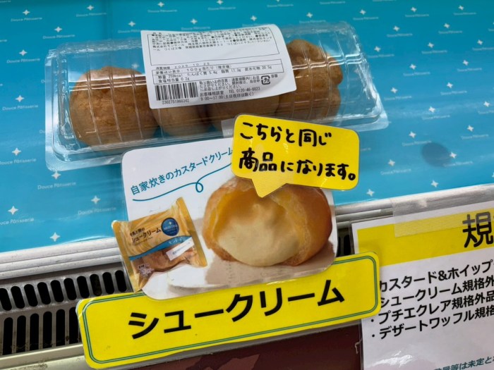 規格外品といっても、重量不足や見た目のわずかな違いによるもので、中身はいつものおいしいシュークリームそのまま。