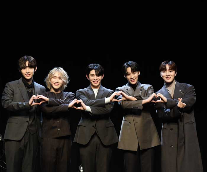 また、「日本のアーティスト、タレントで共演してみたい人は?」との質問には、アインは「ミナさん、サナさん、モモさんが日本の方だと思いますが、TWICEさんです。TWICEさんの振り付けを作ったことがあるのですが、一緒にコラボレーションできたら素敵なステージになると思いました。一緒にステージをやりたいです」、サンイルは「米津玄師さんです。一緒に歌ってみたいです」、G.I(ジーアイ)は「嵐先輩です。同じステージの上に一緒に立って、歌ったり踊ったりできたら幸せだなと思います」、サンホは「福山雅治さんです。昔から歌が好きで、よく聞きました。菅田将暉さんも好きなので、機会があれば一緒にやってみたいです」、ジンフは「中島美嘉さん、Mrs. GREEN APPLEさんとコラボしてみたいです」とそれぞれ夢を語った。