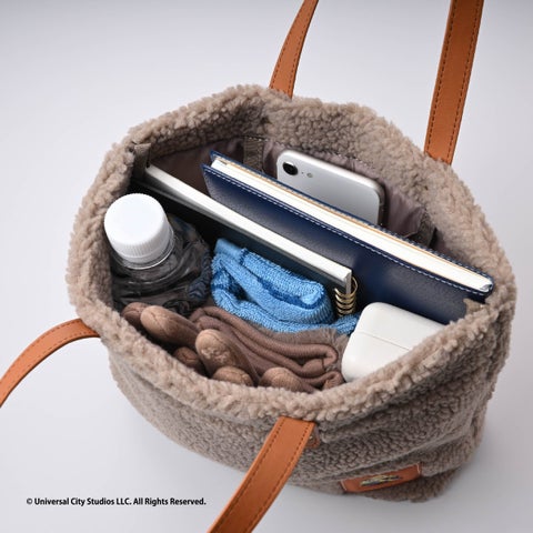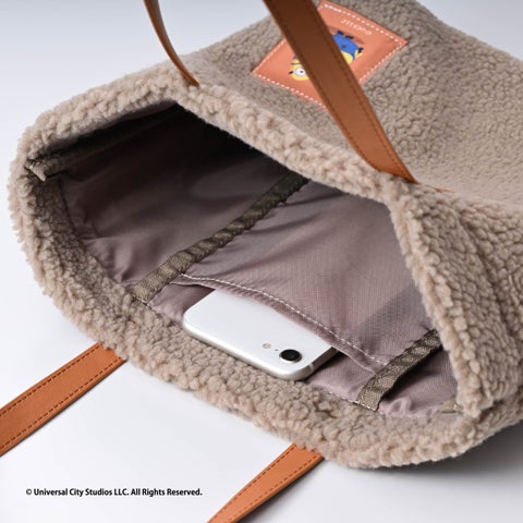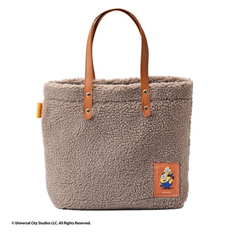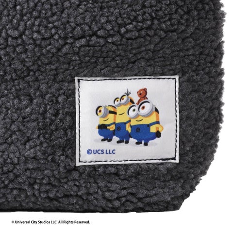 冬シーズンに最適なふわふわなボア素材を使用した「ボアバッグ」は、キュートなミニオンのワッペンがアクセントです。グレーとブラウンの2種類が用意されており、お好みに合わせて選択できます。