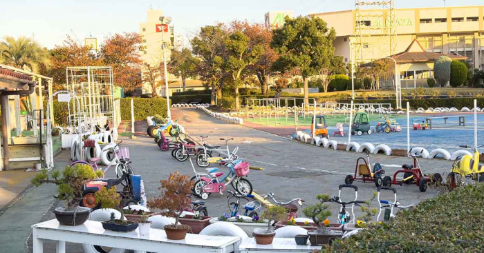 阪急「稲野駅」から徒歩5分の場所にある『稲野公園運動施設』(伊丹市)では、子どもを対象にさまざまな変形自転車を1人100円で楽しむことができます。
