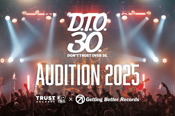 名古屋の新進気鋭のインディーズレーベル・TRUST RECORDSと、ビクターエンタテインメント/Getting Better Recordsがタッグを組み、立ち上げたインディーズレーベル・D.T.O.30.(読み:ディー・ティー・オー・サーティ/DON’T TRUST OVER 30の略)が、新たな才能を発掘すべく、オーディション2025を開催することが決定。本日・9月1日(月)よりエントリーが開始した。