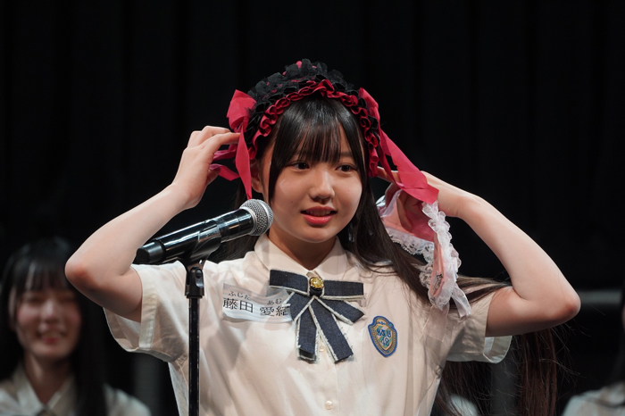 続く2部では、また違った一面を披露。トップの横井結菜はオーディション時に披露したレモンを真顔で食べる芸で客席を笑わせ、田中奈菜子は前方倒立回転を成功させてドヤ顔を見せ、屋木優菜は22秒でルービックキューブの1面を完成させるなど、バリエーション豊かなPRが繰り広げられた。