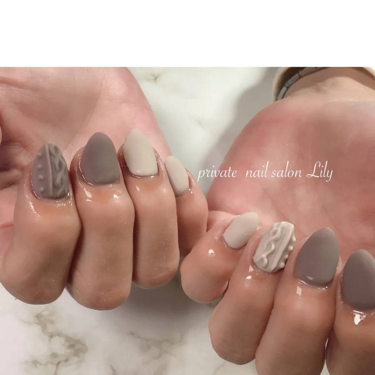 初冬らしいベージュ系ネイルは、マットな質感でこっくりとした雰囲気に♡