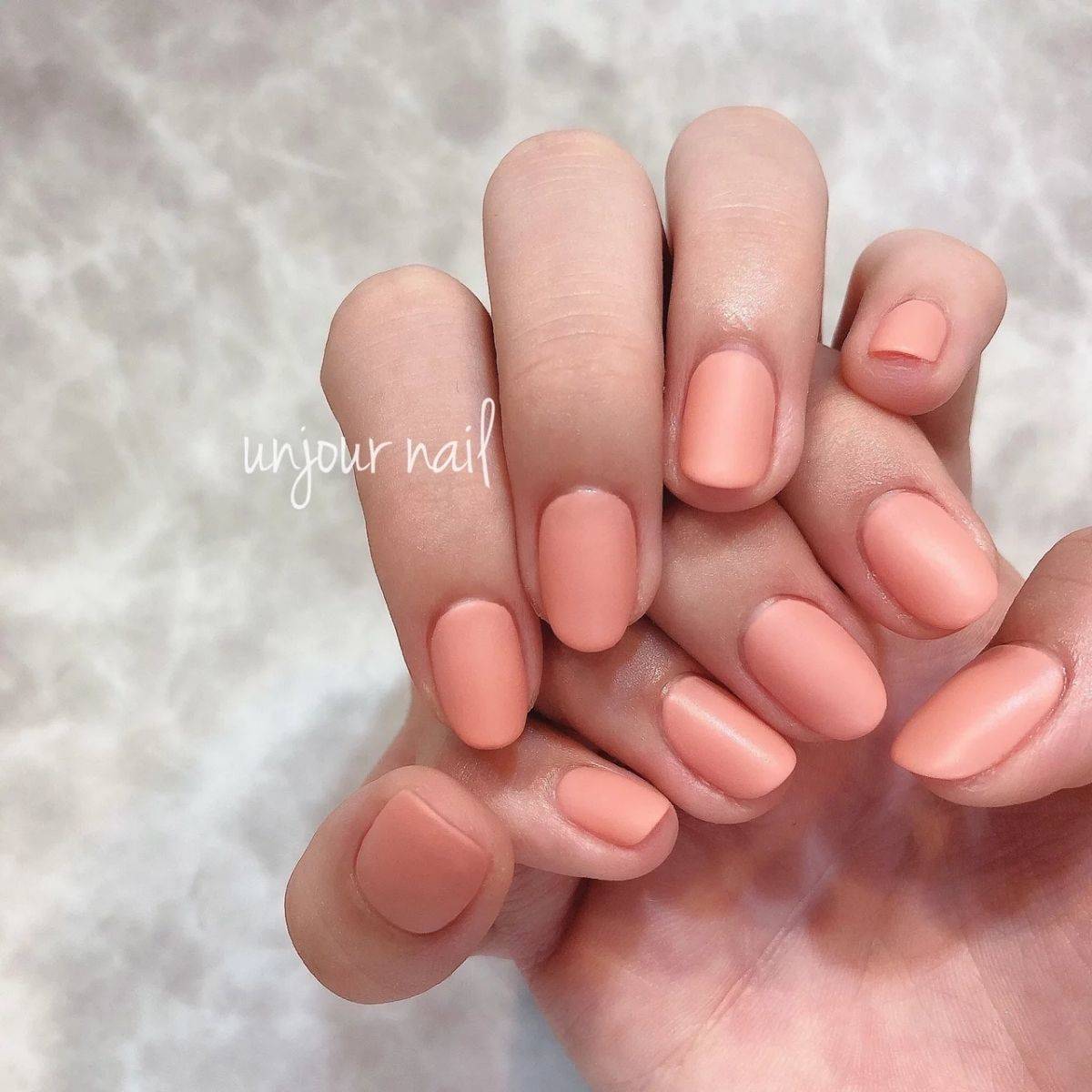 【初冬編】マット系ネイル▶︎サーモンピンクのワンカラーネイル