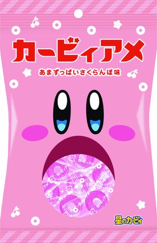 カービィをイメージした、まんまるピンクのさくらんぼ味の飴。パッケージは3種類で、中の袋にもシークレットデザインが隠れている可能性があります。※数量限定