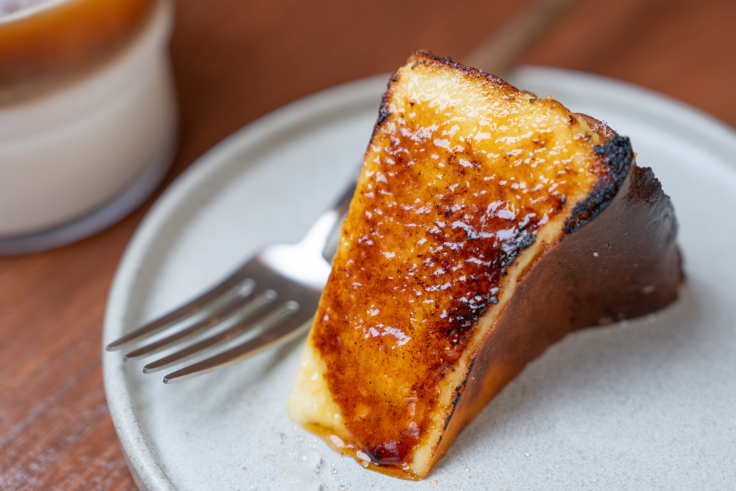 今回はブリュレバスクチーズケーキ(605円 税込)とアイスカフェラテ(605円 税込)をいただくことに。