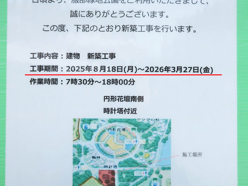 服部緑地のレストハウスがあった場所の新築工事が始まったようです。来春には新レストハウスが完成するとのことです。bymitsuさん