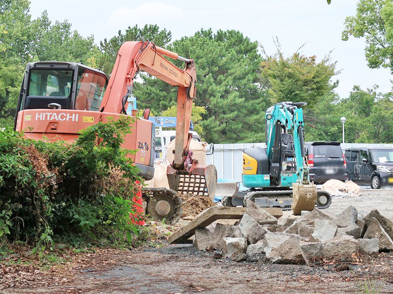 囲いの中には重機が入って