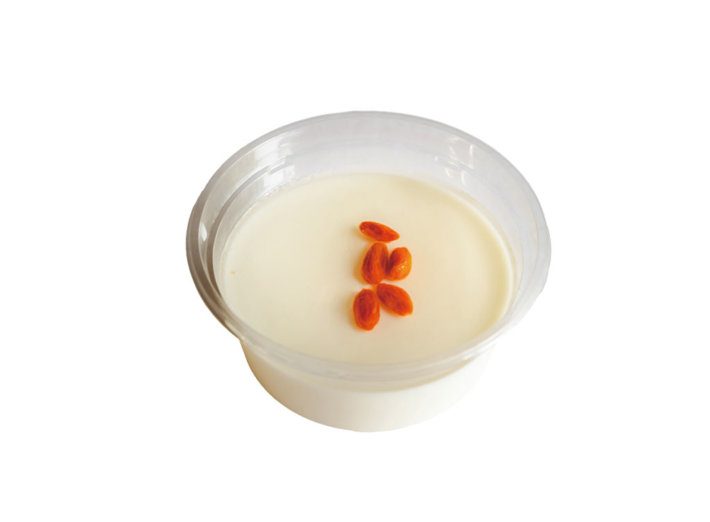 柔らかあんにん豆腐 300円。杏の豆をミキサーで砕くところから作る本格的な杏仁豆腐なので、風味のよさはまちがいなし!こちらのみ購入するファンがいるのも納得。