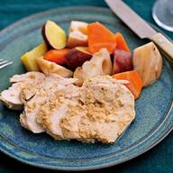 3: 鍋に②、水、オレンジジュース、バターを加えてひと煮立ちさせます。