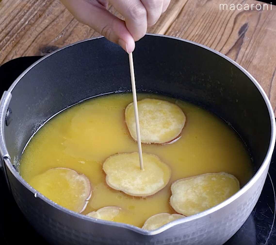 4: 沸騰したら落し蓋をして弱火で10分ほど煮ます。竹串がスッと通るまでやわらかく煮えたらそのまま冷まして完成です。