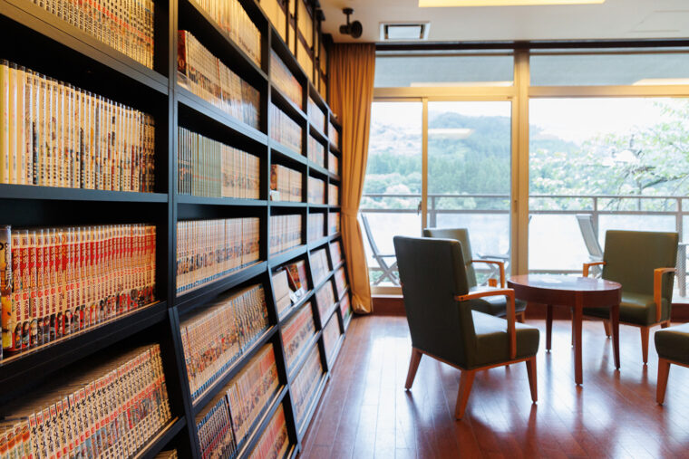 夕食の時間までゆったりとマンガを楽しみたくなるコミックラウンジはロビーに隣接しています。
