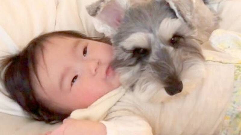 ソファに座るお父さんの膝の上で寛ぐあられちゃん。何とも微笑ましい光景ですが、ふいにお父さんが甲高い声で『ただいまー!』と言ったとか。すると次の瞬間、あられちゃんが『ワンァォーン!』とキレイな美声で続いたそう。
