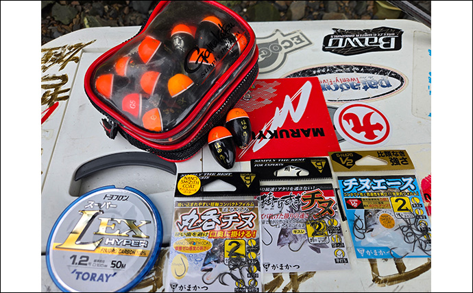 ウキフカセ釣りがメインになる。水深、流速など状況に応じて、ハリスの長さを替えたり、自分の見やすい円錐ウキや棒ウキを使うことも効果的。