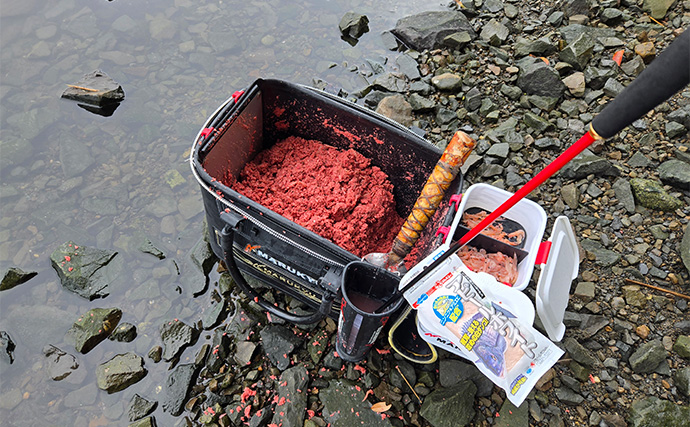 本当なら、チヌ用の配合エサを用意し、沈下速度のやや速めとかかなり速いもの、それと遠投性の高いタイプといった具合に、入る釣り場の状況に合わせた選択が好釣果を生むので注意して欲しい。