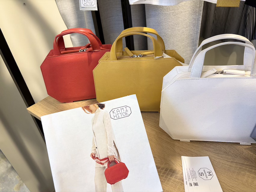 KAMIHITOEは、和紙を糸にして織りあげた“紙布(しふ)”という日本の伝統素材を使うブランドです。