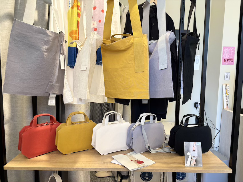 ポップアップの棚には、折り紙のようなシルエットのバッグがいくつも並んでいました。