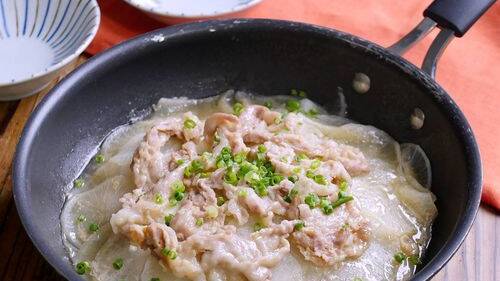 2. フライパンに【A】を入れて混ぜ、中火にかける。煮立ったら、ねぎ、かじきを広げ入れ、梅干しを散らす。再び煮立ったらふたをし、弱めの中火で5分間煮る。上下をざっと返してふたをし、さらに5分間ほど煮る。