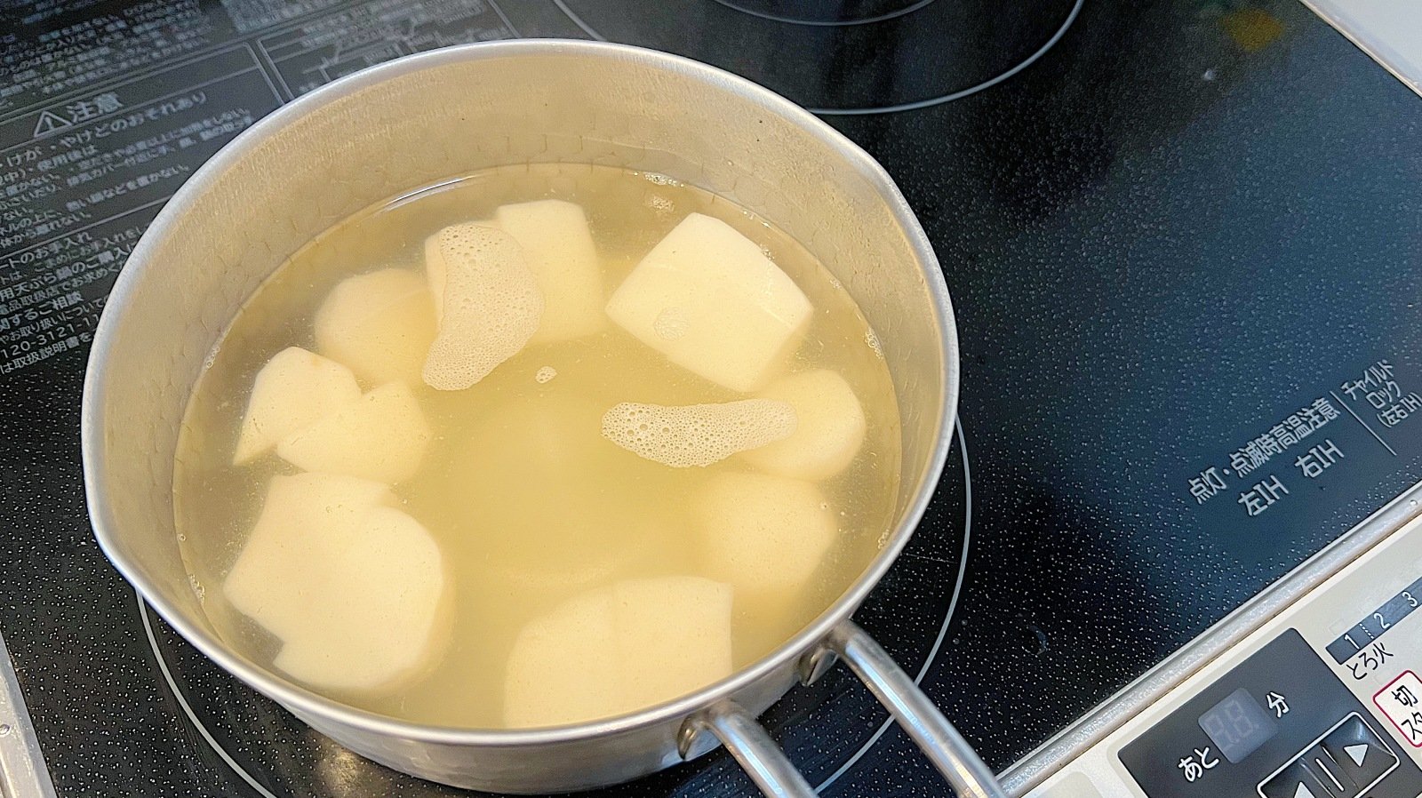 1 鍋にだし汁と食べやすい大きさに切った里芋を入れて中火にかける。