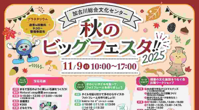 11月9日、加古川総合文化センター(加古川市平岡町)で「秋のビッグフェスタ!!」が開催されます。入場無料。