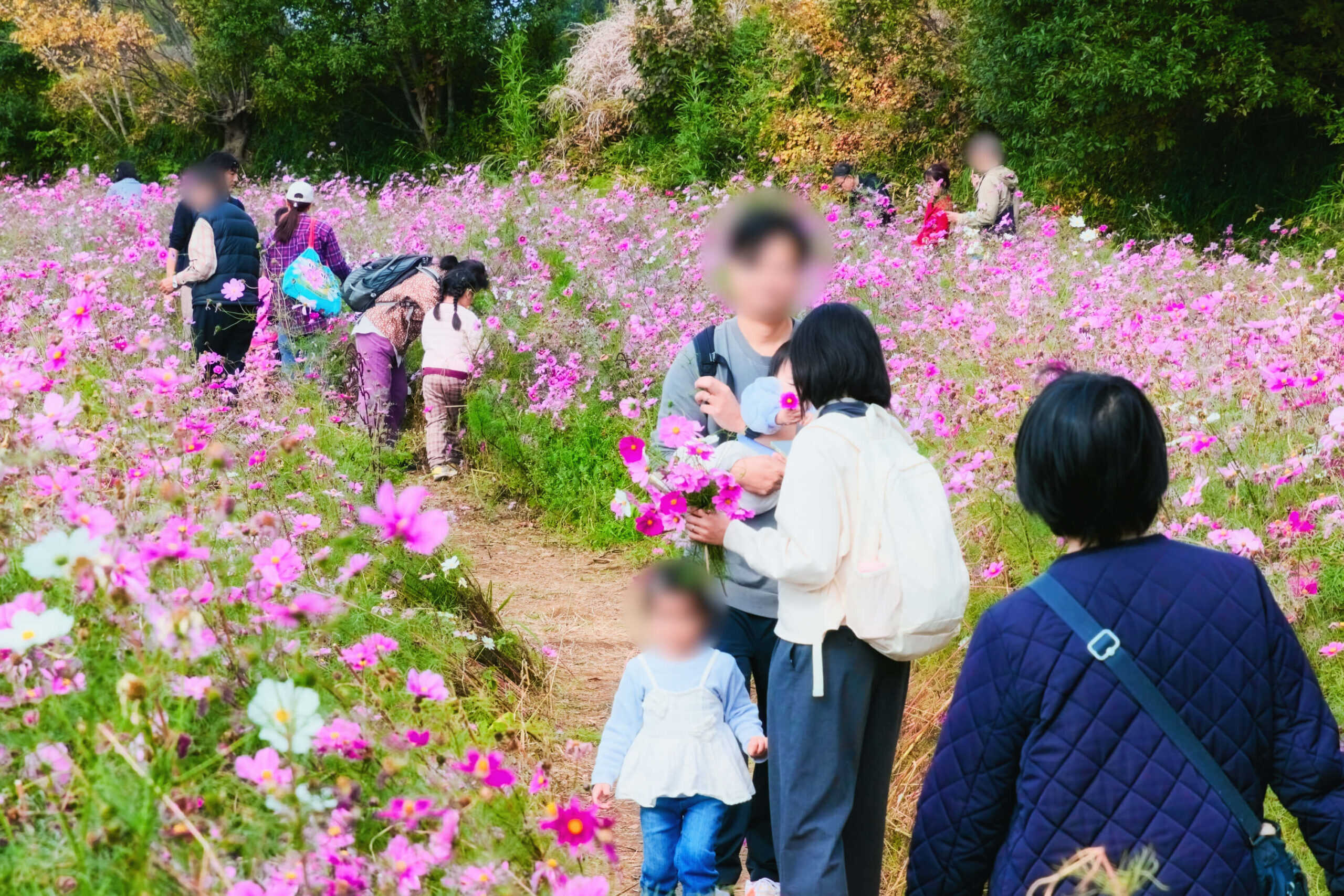 さらに、コスモス摘みのワークショップも同時開催されており、色とりどりの花を手にした人たちが、笑顔で園内を歩く姿があちこちで見られました。