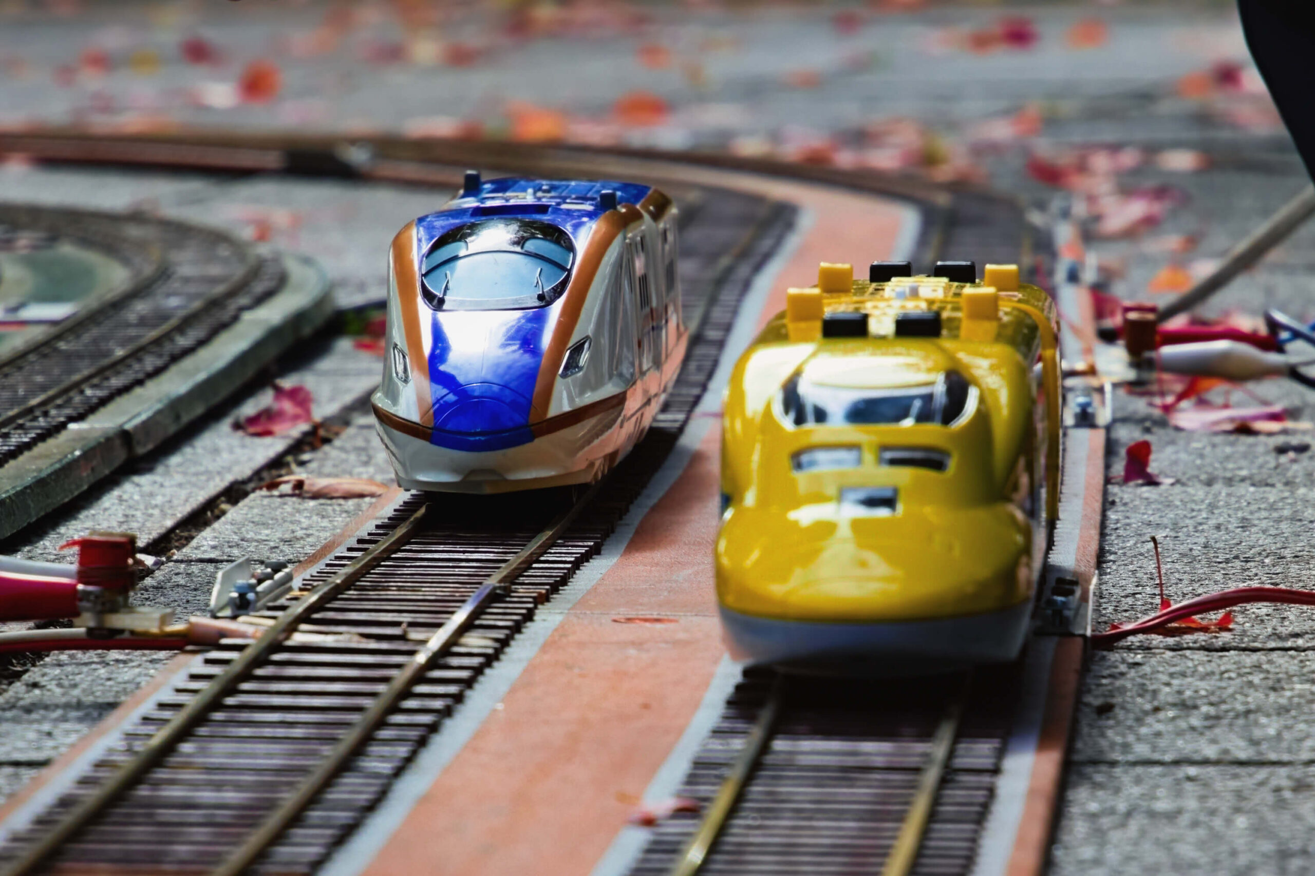 そしてもうひとつ、子どもたちの目を引いていたのが鉄道模型の展示コーナー。展示されていたのは、ドクターイエローやカラフルな新幹線車両が走る模型列車です。