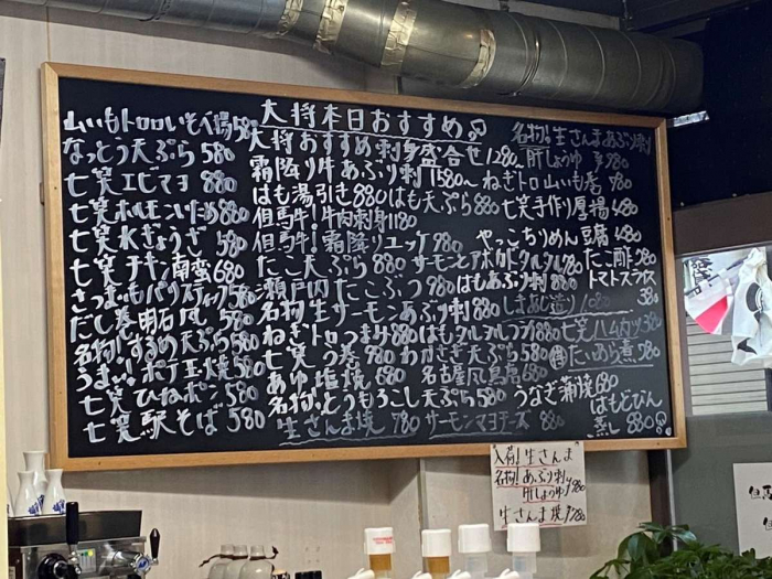姫路駅から徒歩約4分『みんなの味 七笑』黒板に書ききれない旬の料理でまんまる笑顔 姫路市
