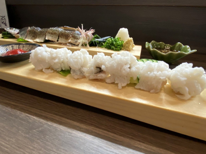 今年は豊漁といわれているサンマ。脂がのっていて、近年まれにみるおいしさ!こちらでしか食べられない大将自慢の肝しょうゆが、さらにサンマの味を引き立てます。