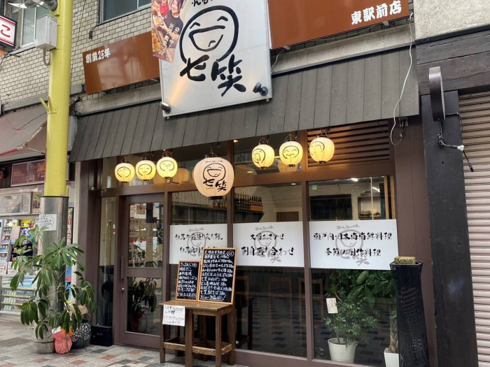 JR姫路駅東口から徒歩4分、パステルおみぞ商店街にある『みんなの味 七笑』(姫路市)。2025年7月に塩町からおみぞ筋に移転オープンしました。
