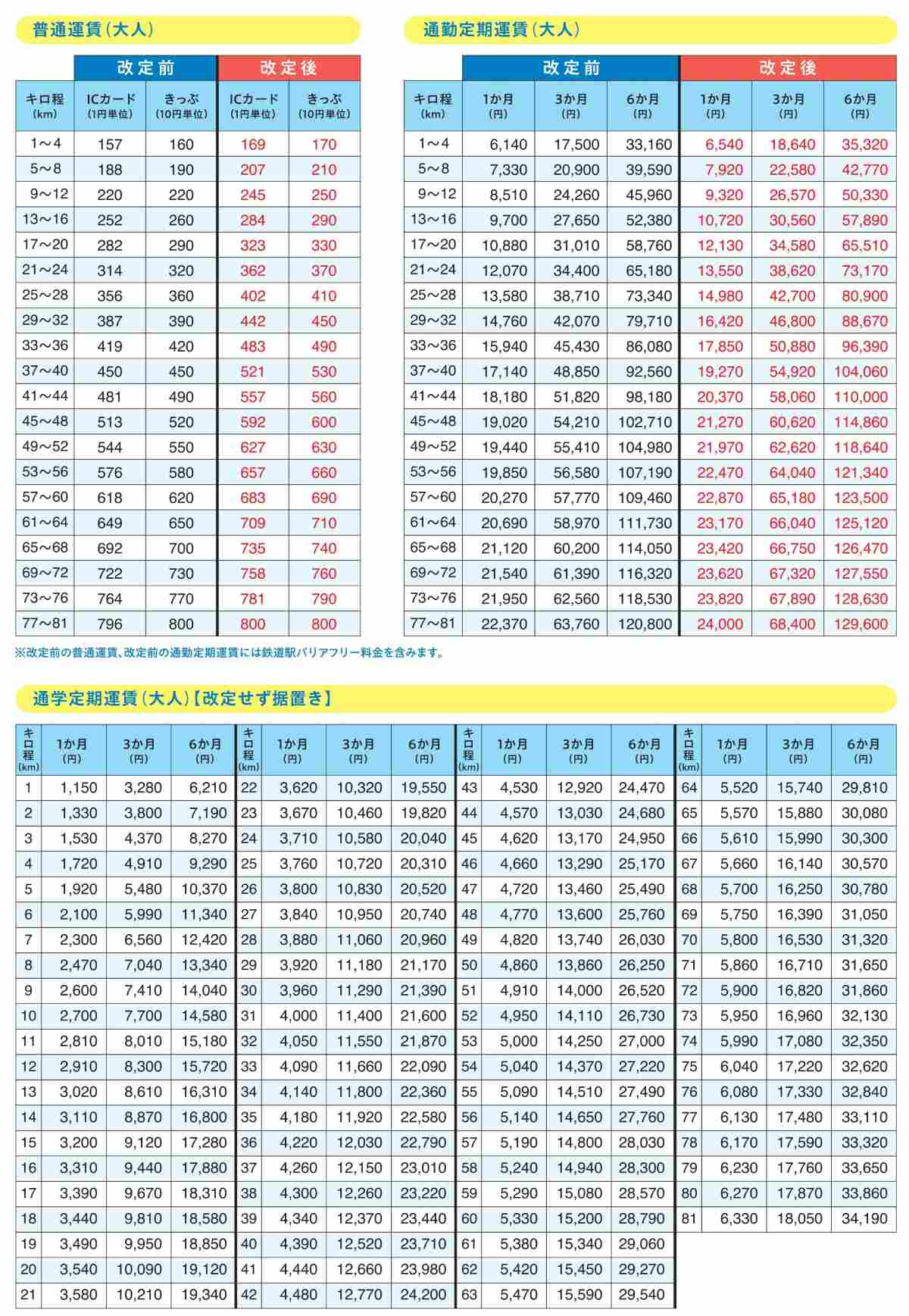 乗車券・定期券の利用:運賃改定前までにご購入いただいた各種乗車券は、有効期限終了までご利用いただけます。(発売金額:使用開始日が3月14日(土)以降(運賃改定後)であっても、3月13日(金)までに
