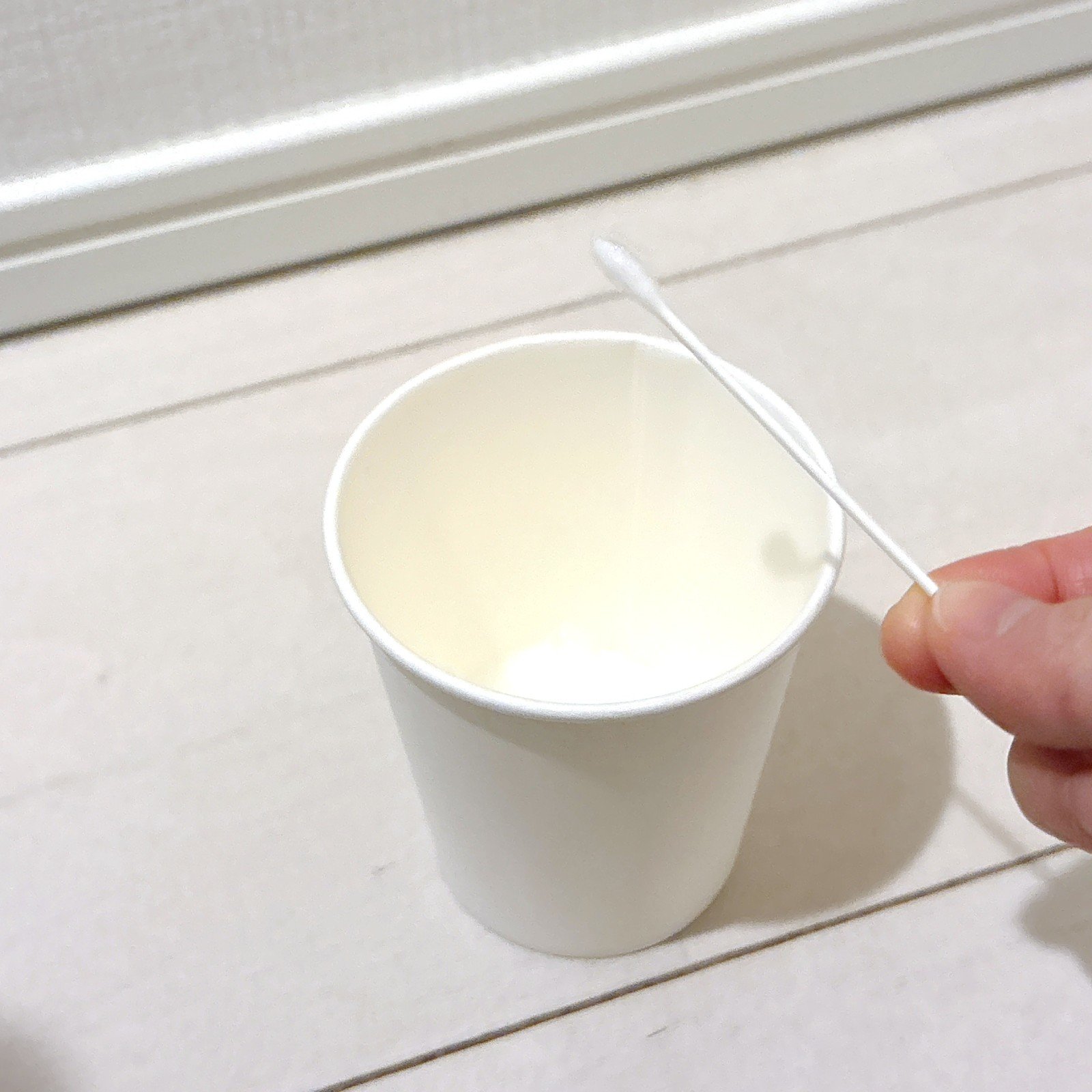 クイックル ホームリセットと綿棒のほかに、紙コップをひとつ用意してください。